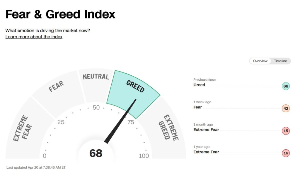 CNN Business에서 발표하는 공포와 탐욕 지수(Fear & Greed Index)가 바로 그 역할을 합니다.